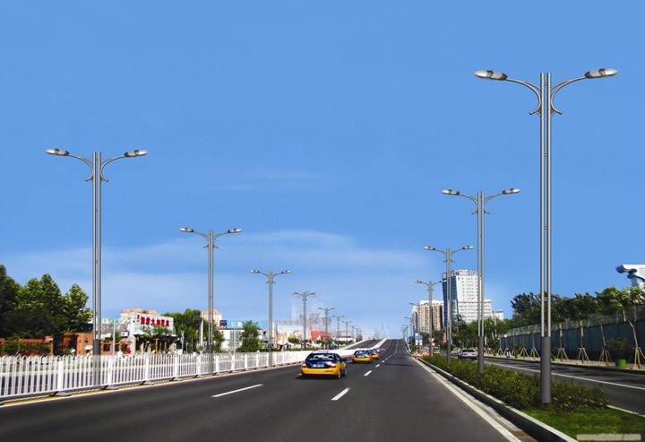 上海滬松公路呈L型走向,起于泗磚路、至于泗陳公路,2015年重新修建,工程全線長約1071m。路燈使用數(shù)量為1880根,道路規(guī)劃紅線寬度45m,道路等級為二級公路, 計算行車速度60km/h,斷面布置為雙向六快二慢。